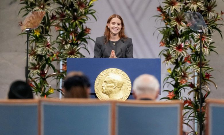 Hija de María Corina Machado recibe el Nobel de la Paz en Oslo ante la ausencia de la opositora venezolana