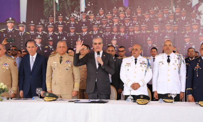 El presidente Abinader tomó el juramentó a los nuevos oficiales y encabezó el ceremonial de entrega de entrega de sables, símbolo del compromiso institucional asumido por los cadetes como oficiales policiales.
